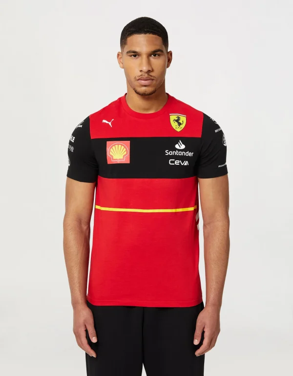 + Free ShippingThe authentic PUMA x Scuderia Ferrari Carlos Sainz 2022 team t-shirt comes in the same Rosso Corsa red colourway as all the 2022 Ferrari F1 team merchandise, with the addition of Sainz’s track inspired ’55’ driver number emblazoned across the back. Sainz’s Ferrari PUMA driver t-shirt is made from 100% cotton, in a classic fit with a crew neck collar. As worn by Scuderia Ferrari Formula 1 team driver Carlos Sainz during 2022 F1 race weekends, the t-shirt comes with the full range of Scuderia Ferrari’s F1 partner logos across the front, back and sleeves